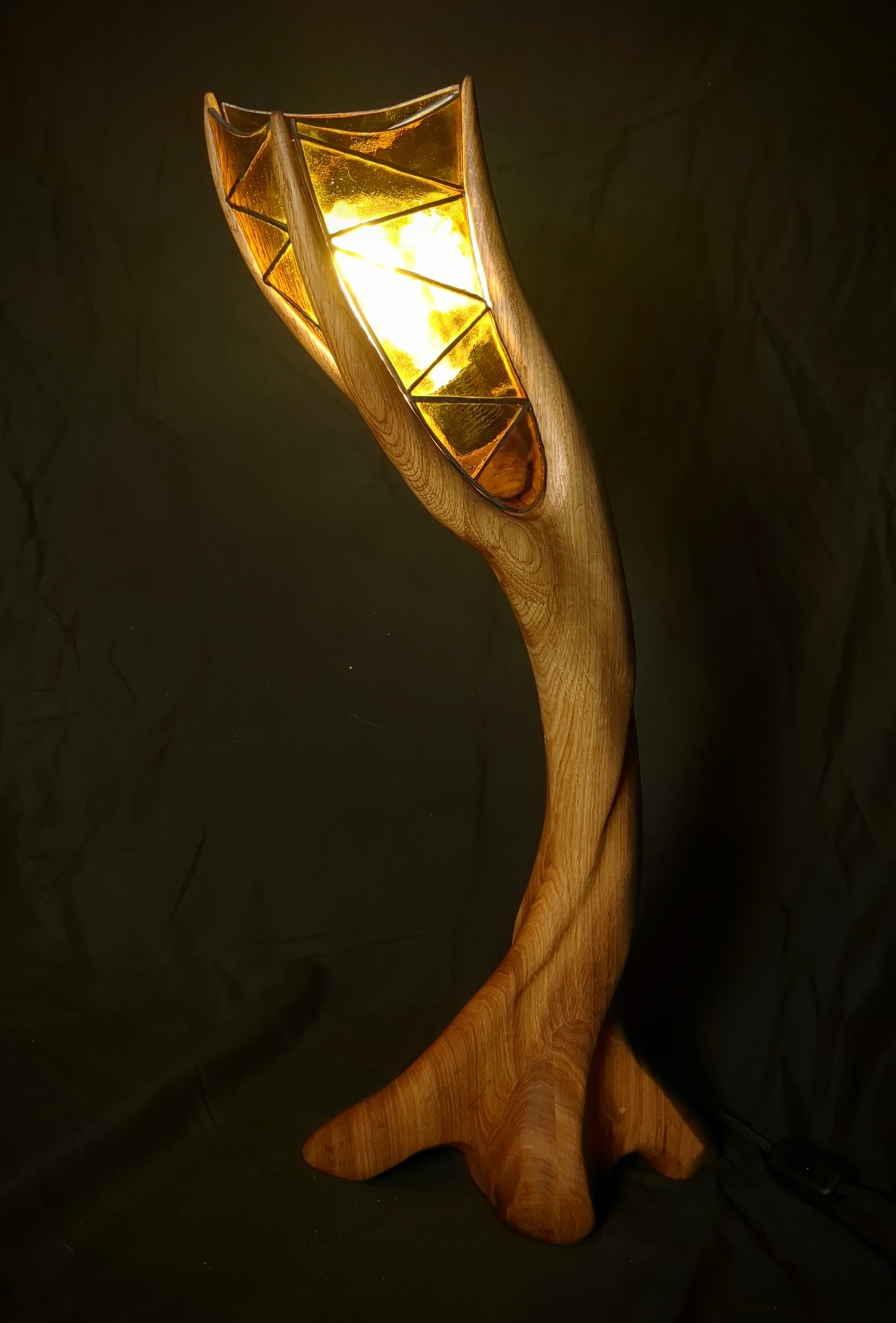 Dubová lampa s vitrážovaným stínidlem