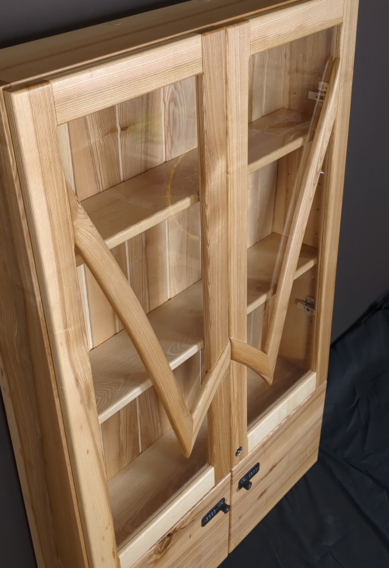 Vitrína z jasanu, která slouží pro výstavu knih k půjčení a zároveň i pro vyzvedávání a vracení půjčených knih. Vitrína visí na Waldorfské škole v Pardubicích, proto to výrazné dvojité W na přední straně skříně.